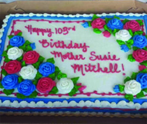 The “favor” that was referenced earlier is realized in the fact that in her 103-year journey, Mother Mitchell is a registered voter; is a living testimony to the goodness of God. She dresses immaculately and wears hats and jewelry to match whatever she decides to wear. Mother Susie Mitchell is a joy and a delight to hear speak about her life. Being in her presence makes Psalm 27:1 come alive: “THE LORD is my light and my salvation; who shall I fear? THE LORD is the strength of my life; of whom shall I be afraid? (KJV)