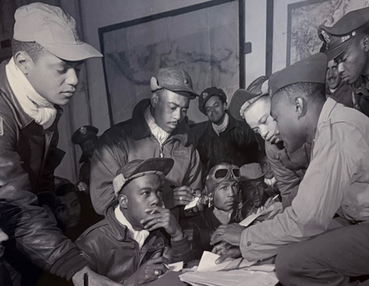 The exhibition includes a gallery of images by photographer Toni Frissell, which may be the only photos taken of the airmen in Europe by a professional photographer.