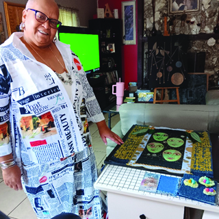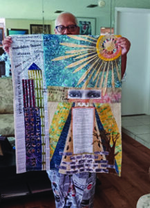 “I read the poem, I had an idea in my head, and just did it,” says Alexander about her mixed media art piece. The piece included Flewellyn’s poem and newspaper articles about her 1965 fight to keep Negro history in the school system in Cleveland, Ohio. “I was more than pleased with the outcome. I was humbled that she would include my story in the quilt. I was thrilled; it is something I can show to my grandkids,” Flewellyn concluded.