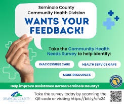 This feedback will help improve the County Community Health Initiative, which aims to provide direct and immediate access to essential resources such as medical and mental health care, educate Seminole County residents about available resources, and offer tools and methods to empower those interested in taking control of their health. Individuals are encouraged to take the survey to improve health assistance across Seminole County.