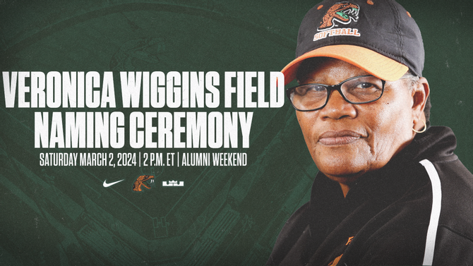 | TALLAHASSEE – Florida A&M Athletics will officially rename the FAMU Softball Field to Veronica Wiggins Field on Saturday, March 2, 2024, during softball alumni weekend as the Rattlers host Jacksonville University.